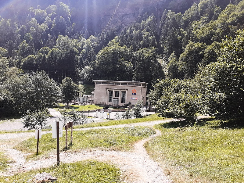 centrale hydro-electrique qui turbine les eaux captées au lac du Portillon.